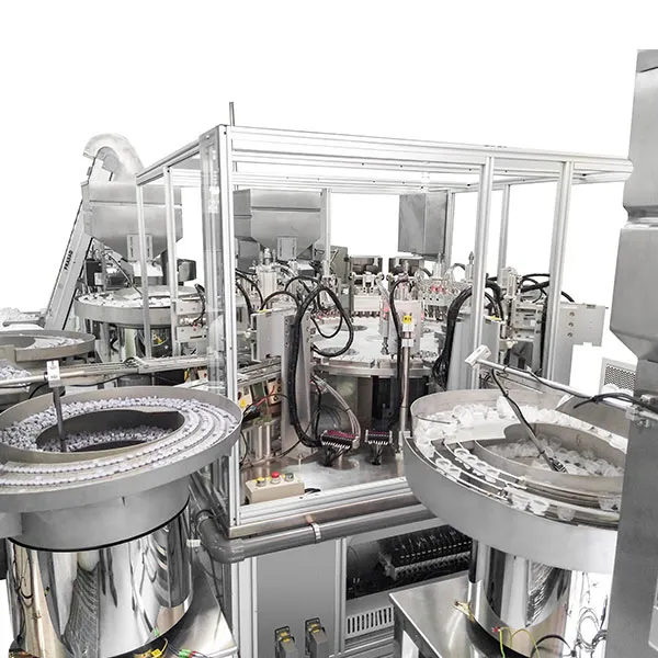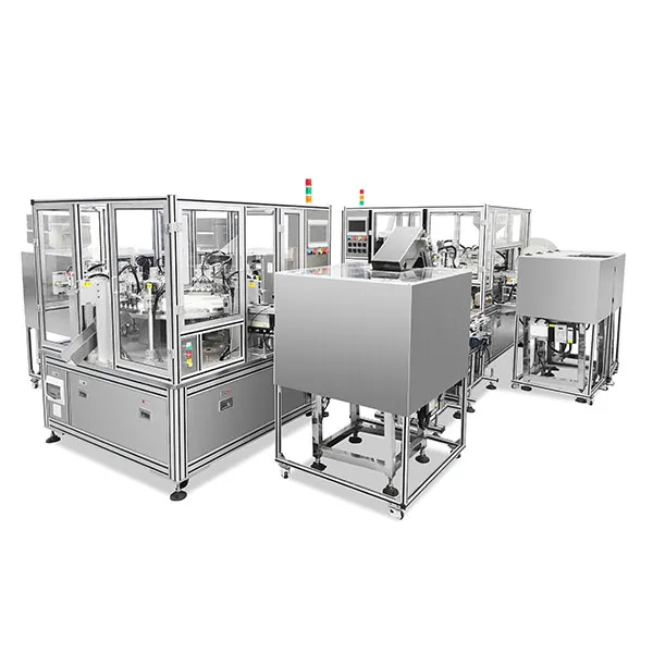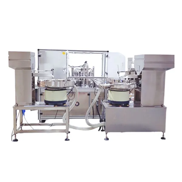Оборудование предназначено для автоматической сборки комбинированных крышек для инфузионных мягких контейнеров и пластиковых флаконов.