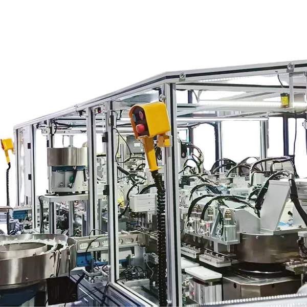 Механизм передачи оборудования использует режим кольцевого роликового конвейера, управляемый сервомотором для прерывистого движения и оснащенный точным механизмом позиционирования. При сборке запасных частей инструменты находятся в состоянии покоя, каждая рабочая станция оснащена механизмом вторичного точного позиционирования, чтобы улучшить скорость сборки продукта.